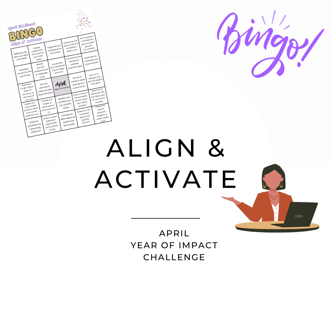 Ready to align your actions and activate your goals this spring? Join the BizBoost Align & Activate Bingo Challenge for a fun, interactive way to build clarity, consistency, and momentum in your personal and professional life throughout April!